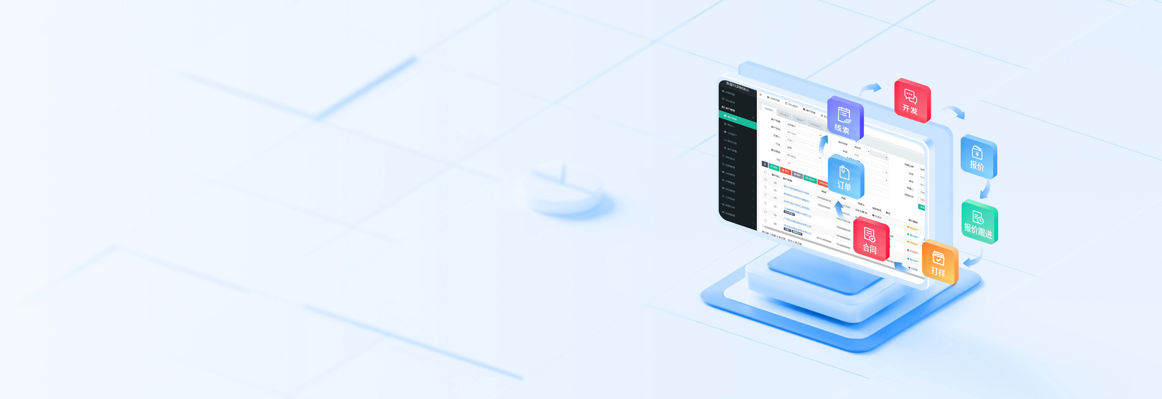 主动式官网 支持AI需求式,不同客户选择标签,推荐展示不同内容 全网分析 覆盖主流搜索引擎,监控分析同行公司竞争动态分析,获取潜在客户公司数据及联系方式 AI自动开发 客量CRM对接,不再依赖关键词搜索,AI自动理解你的需求,进行全渠道挖掘,智能分析客户匹配度,轻松定位全国买家 主动多方位营销 营销模板、短信、邮件、社交媒体、活动、问卷等多渠道主动营销,在线完成客户建档,营销效率提升一倍 立即体验 预约演示